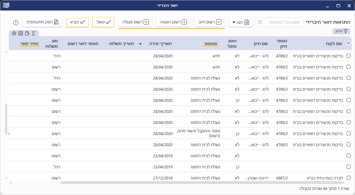 2. במסך בו יוצגו כל המסמכים הרלוונטיים, סמנו את המסמך הרצוי ולחצו על [רשום פעולה] בראש המסך.