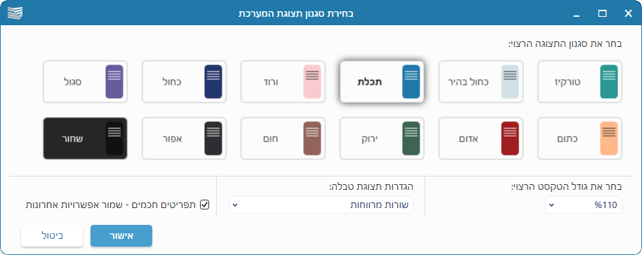בתוכנת עודכנית תוכלו לבחור באחת מערכות הצבעים השונות, בהתאם להעדפה האישית.