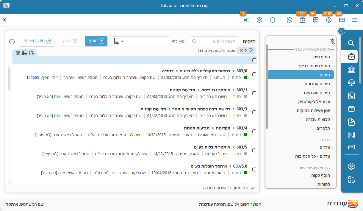 על מנת שהשינויים שבוצעו יכנסו לתוקף, יש לצאת מהתוכנה ולהיכנס מחדש.