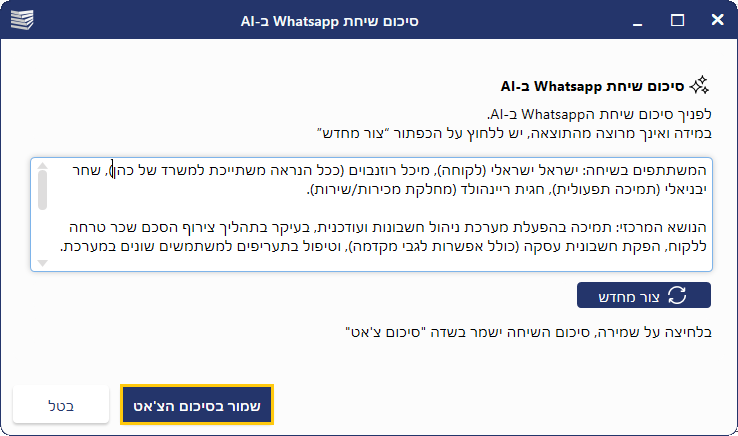 יצירת סיכום של שיחות WhatsApp (צ'אטים),