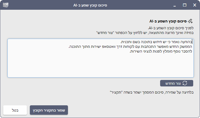 סיכום קובץ שמע ב-AI