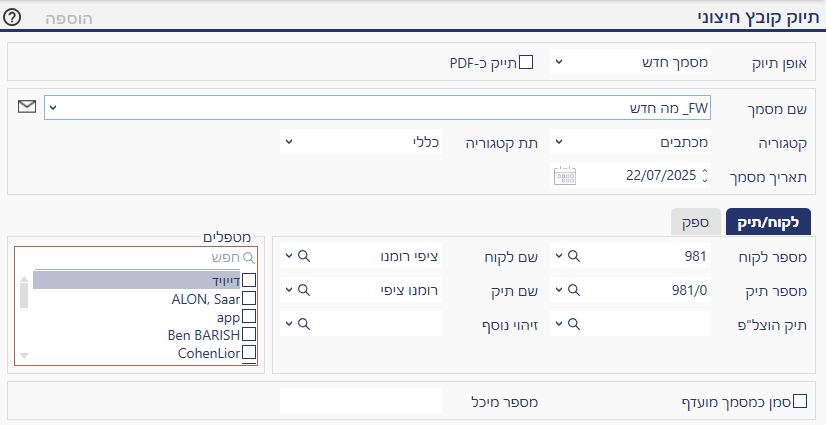 - כבר זמין ללקוחות שרכשו מודול דואר היברידי.