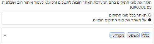 תוכלו להגדיר את סוגי התיקים אשר המערכת לא תסרוק לאיתור חוב לתשלום.