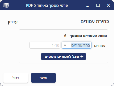 - פיצול עמודים – בחלון מסמכים שנבחרו, לחיצה ימנית בעכבר על הקובץ תציג כפתור