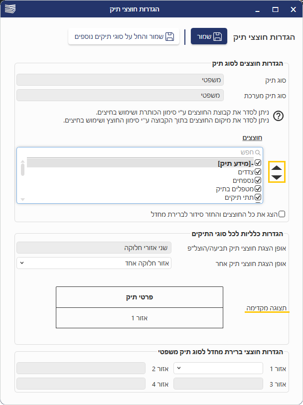 להגדרות חוצצי תיק הוספנו אפשרות להתאים אישית את סדר הופעת החוצצים בכרטיס תיק ובכרטיס לקוח.