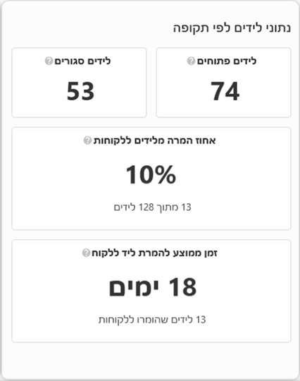 ולהציג סטטיסטיקות של נתונים כמו יחס המרת ליד ללקוח.