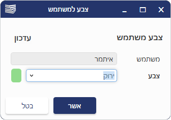 לכל משתמש תוכלו להגדיר צבע ייחודי ולהוסיף או לעדכן פגישות ודיונים.
