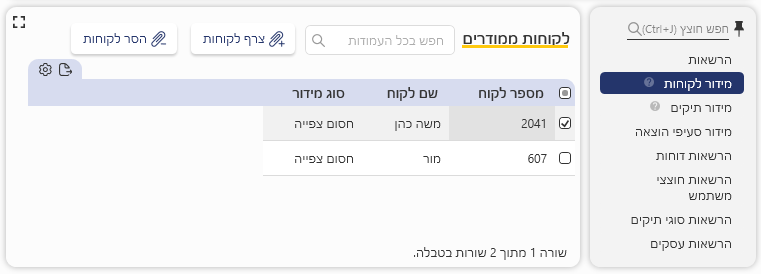 אפשרות זו תקפה רק לתיק הראשון שהוקם ללקוח.