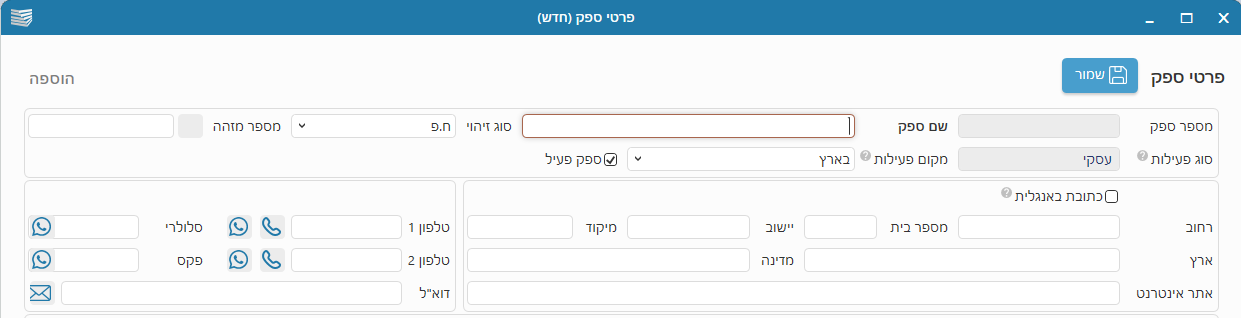 - שדה "מספר מזהה" – הקלידו את מספר הח.פ של הספק.