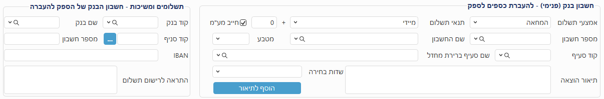 - קוד סעיף – תוכלו להגדיר סעיף הוצאה שיופיע באופן קבוע בעת הוספת הוצאת ספק. למאמר על הוספת הוצאה לחצו כאן.