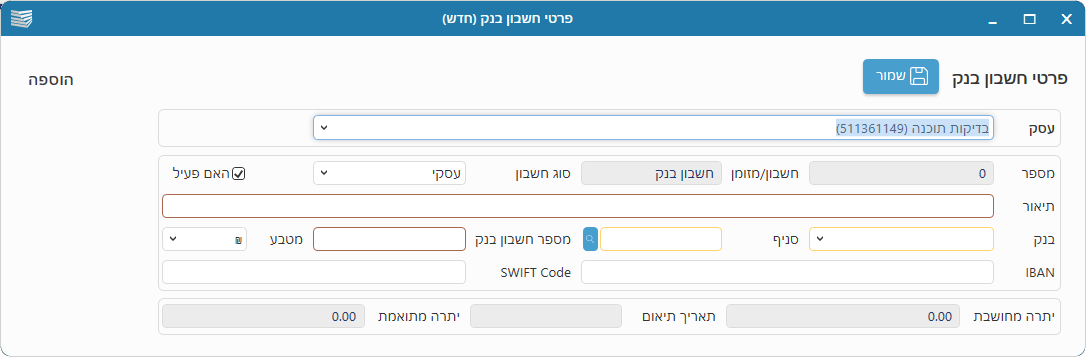 הוספת חשבון בנק לעודכנית, תאפשר לכם לנהל רישום של תשלומים לספקים,