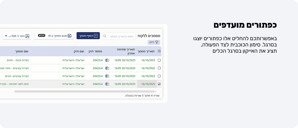 הממשק החדש עוצב בקפידה כדי להעניק לכם חוויית שימוש נעימה, נקייה ומודרנית, עם סכמות צבעים חדשות, ומסכים מעודכנים. העיצוב החדש לא רק נראה יותר טוב, הוא נועד לייעל את המעבר בין התפריטים העיקריים, לצמצם קליקים מיותרים, ולעזור לכם להתמקד במה שחשוב באמת.